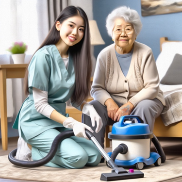 エリは笑顔でうなずきながら、掃除機のスイッチを入れる。